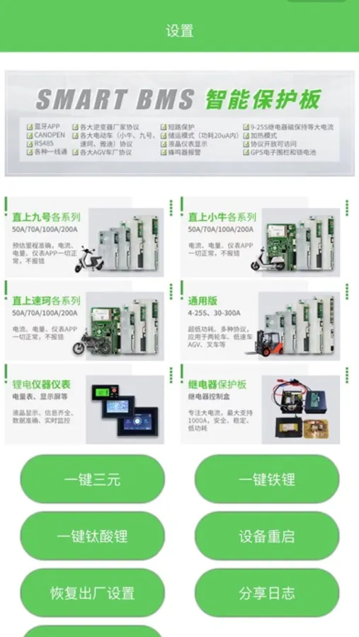 【电池参数修改】 按应用场景的不同可以对电池类型、串数以及电压、电流的各项报警值进行修改;