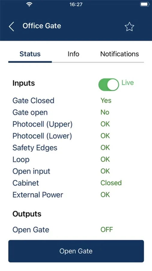 LIVE FEED: av portens posisjon og sikkerhets-sensorenes tilstand