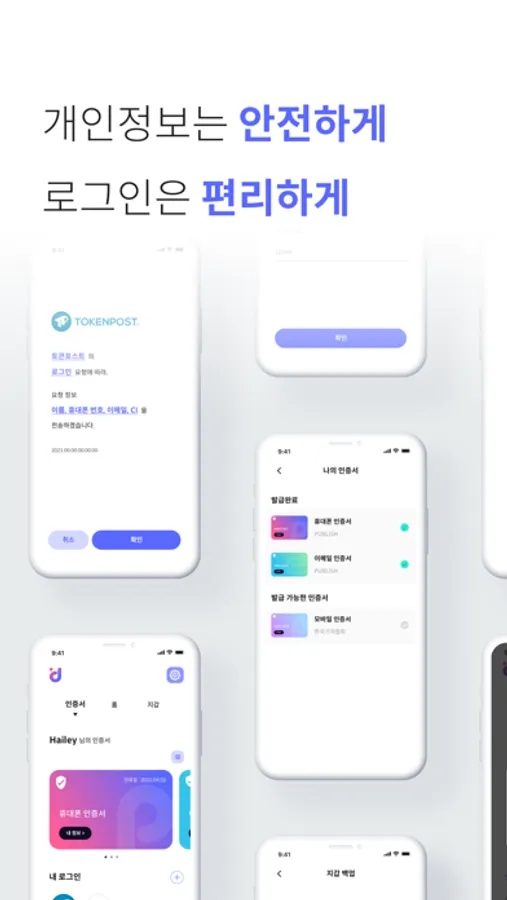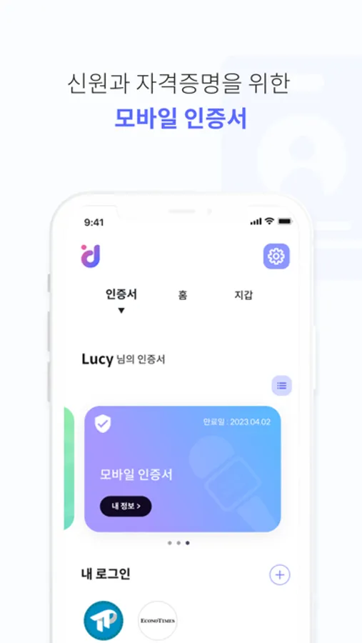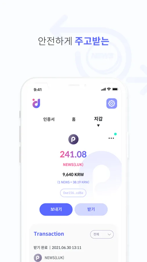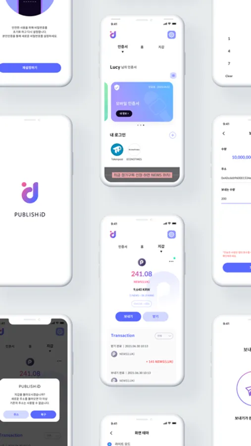 블록체인 기술을 적용한 간편 로그인, 신원증명과 자격확인을 위한 모바일 인증서, NEWS(LMT) 디지털자산의 지갑 서비스를 제공합니다.