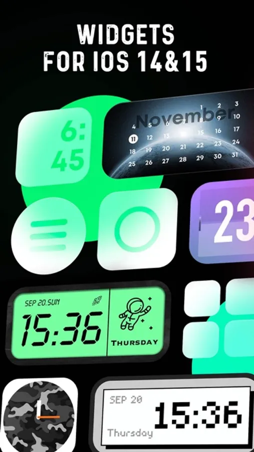 App provide many widget contents & themes, you can use elegant default theme or create new theme with your creation!