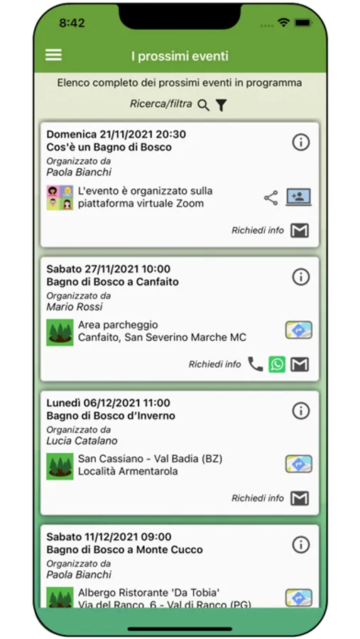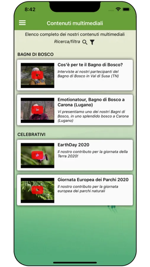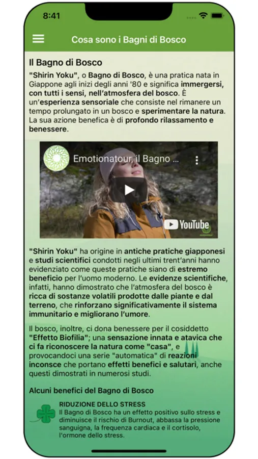 In questa app troverai informazioni su come beneficiare la pratica dei Bagni di Bosco, portandola nella tua vita attraverso eventi dedicati, video, audio e corsi.