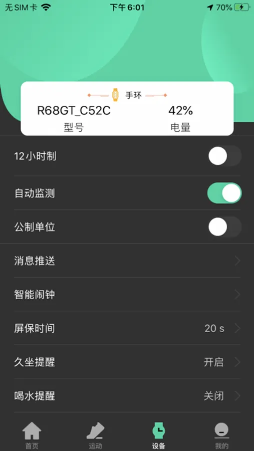 消息提醒:当您佩戴手环并与应用程序同步时,可以选择在应用程序中打开消息推送,久坐提醒,喝水提醒。为了实现有规律的生活。
