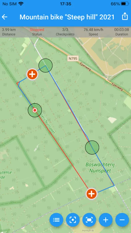 - Real-time insight into the distance, time, speed and number of checkpoints passed