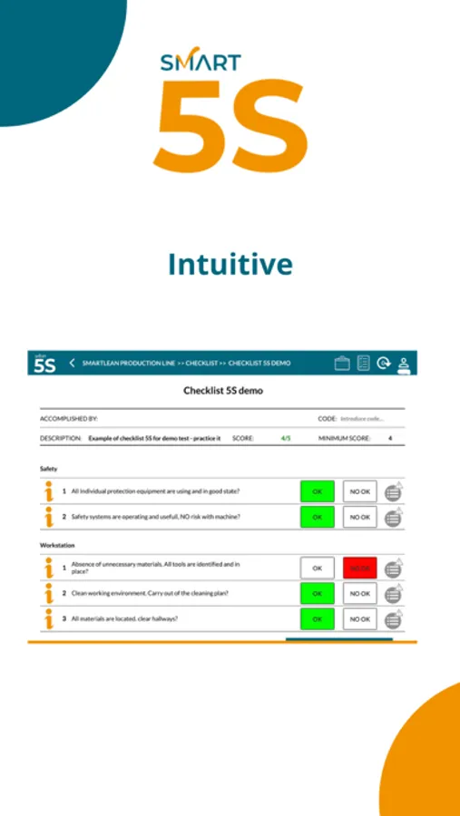 - All in one: centralized and real-time information on the status of the 5S in the areas of the company.