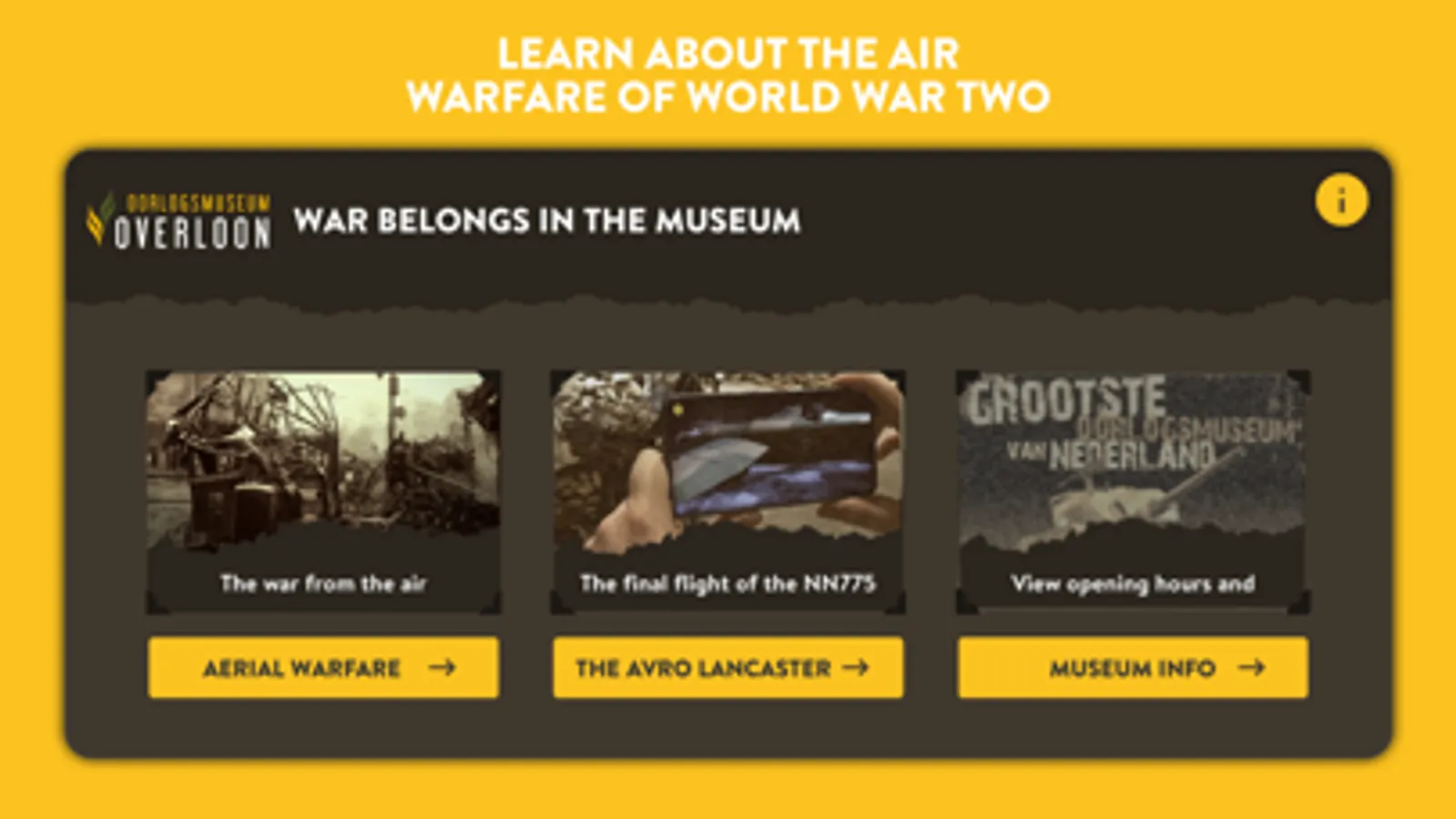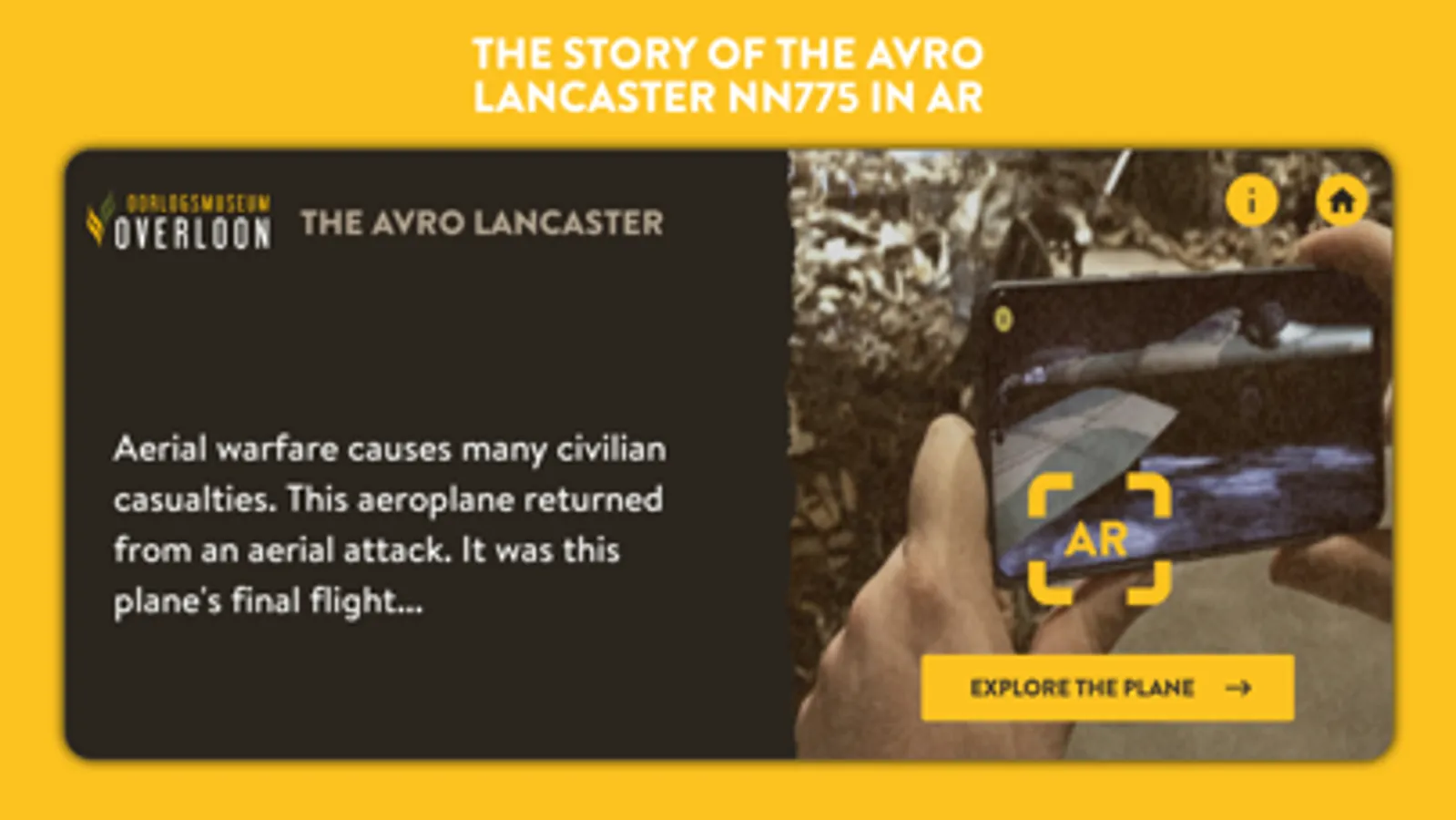 This app is an educational tool for visitors of the Overloon War Museum, interested in a real air crash investigation of a former Royal Air Force bomber. The Lancaster NN775 of 514 Squadron crashed on March 5, 1945 around 3 pm near the Belgium town of Glabbeek. This machine had taken off at 10:35 am in Waterbeach with 169 other bombers and was en route to Gelsenkirchen to attack a petrol refinery. The seven people on board were killed: pilot F/O Holman Kerr (23y), Sgt William Marsden (20y), navigator F/Sgt Sidney Smith (21y), F/O Frank Clarke, F/Sgt Allan Olsen (20y - Australia), Sgt Christopher Hogg (20y) and Sgt Herbert Thomas (23y - Jamaica). Initially, in the first years after the war, only paltry remains were found, buried under a cross marked "Bomber Crew (Perhaps 5)". These first years were particularly difficult for the families involved, as they remained in the dark about the fate of the crew for a long time. Only an Australian badge was found for Allan Olsen, for example - as he was the only Australian, this meant that he too had definitely died.