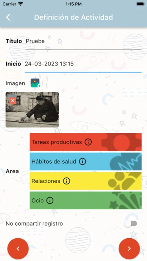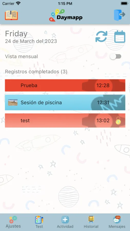 Registra en unos segundos tus actividades diarias, futuras y pasadas, como lo harías con la ayuda de un/a psicólogo/a experto/a.