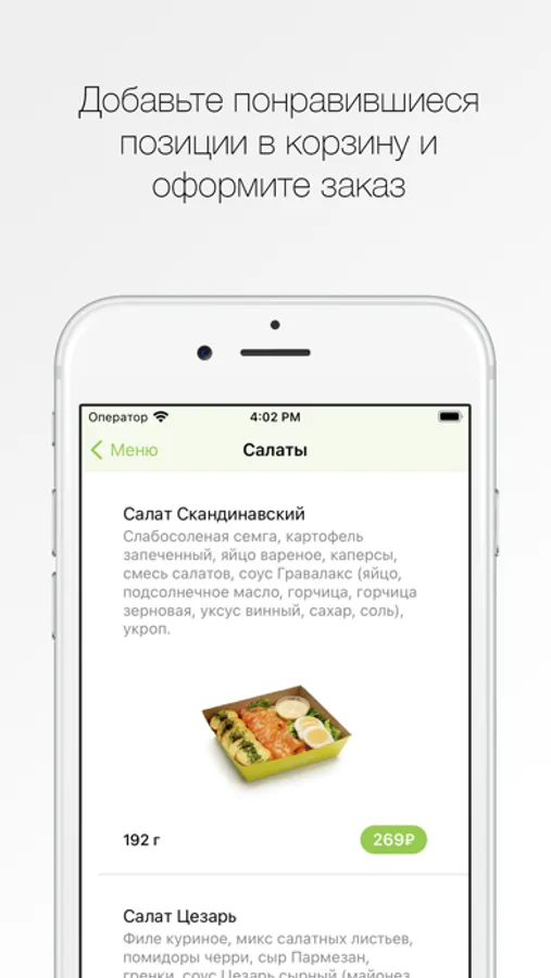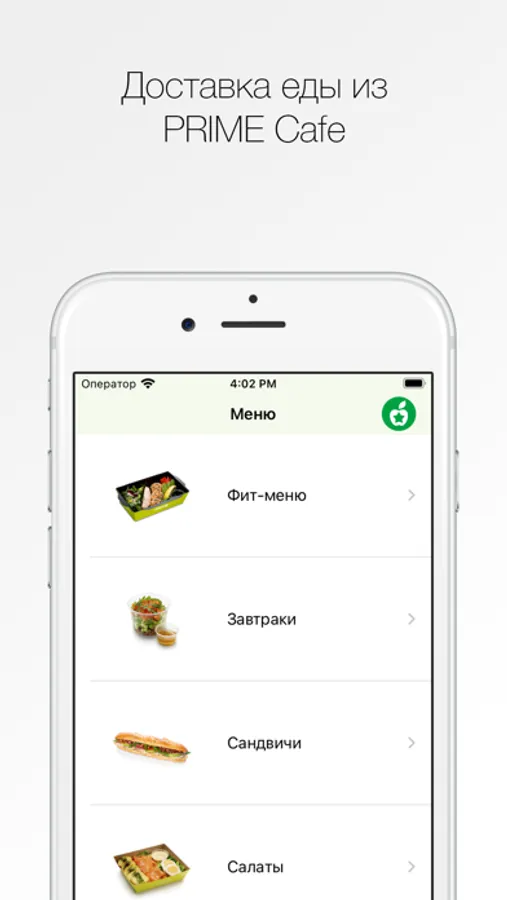 Как сделать заказ в приложении “PRIME Cafe”: выберите понравившиеся позиции из меню, добавьте их в корзину и перейдите на экран оформления заказа (по нажатию на иконку корзины).