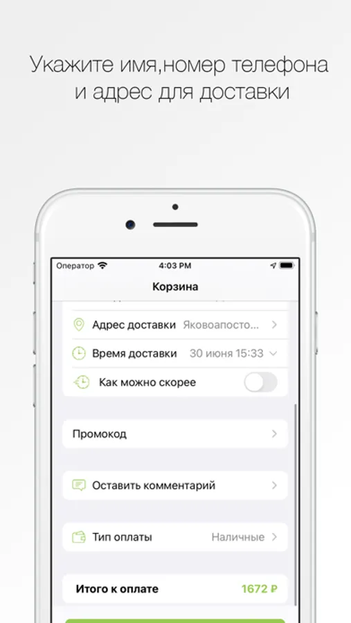 На экране заказа добавьте свою контактную информацию для первого заказа: Имя, Номер телефона и адрес электронной почты, чтобы получать уведомления об оплате.