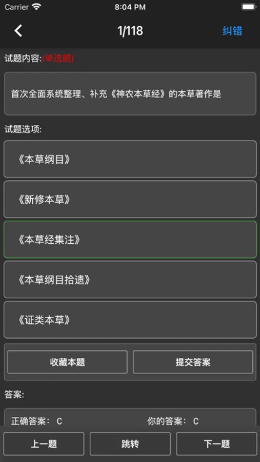 试题纠错: 如果您觉得我们的试题有不正确的地方,可以在通过纠错功能告诉我们,我们进行试题修正后,用户通过更新对试题进行纠错