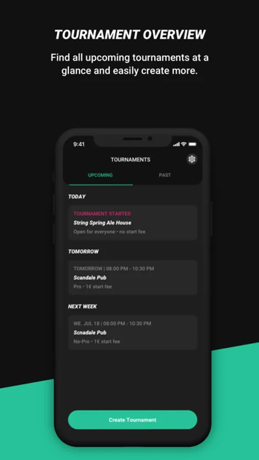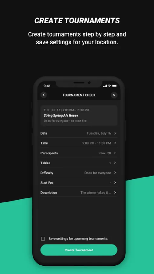 This is your key to the app. Here you can also register multiple locations and get statistics about your tournaments. We will expand this area bit by bit.