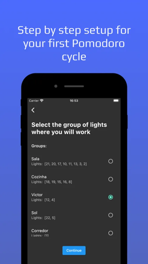 - Choose with group of lights you wan't to PomoLights control.