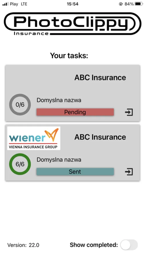 You activate the application functions by clicking on a special access link obtained from your insurance company (e.g. via SMS or email), which when clicked opens the PhotoClippy Insurance application with specific settings defined by your insurence company.