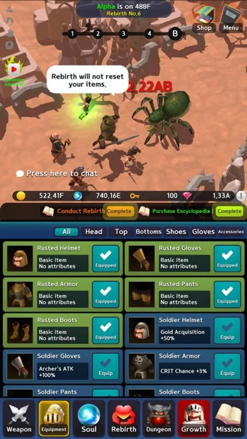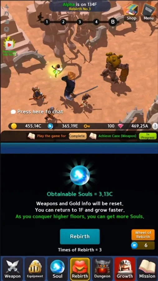 3. Rebirth provides you with a lot of Souls. You can use these Souls to get more powerful attributes.
