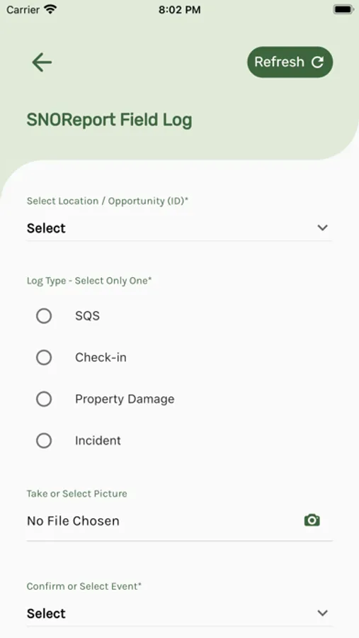 The snoservices application allows on the go reporting of service calls