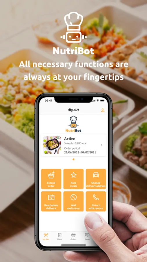 NutriBot Meal Plan & Orders application is intended for diet catering clients and is used for managing the purchased diet and communication with catering. The application will allow you to manage your diet conveniently from your phone without a necessity to visit the catering website or call customer support. All necessary functions are
