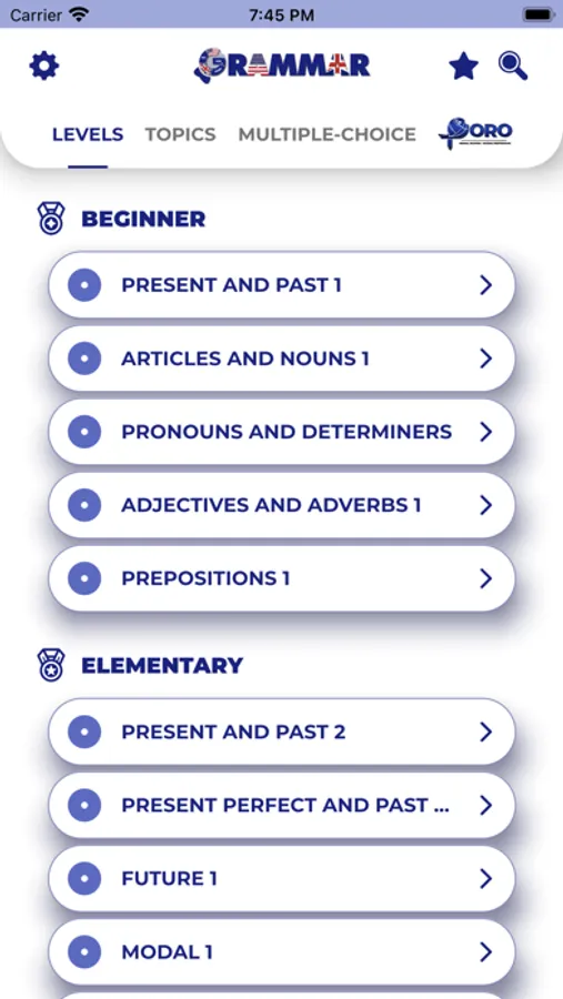 1) Learn grammar lessons by level from beginner to advanced: We categorized them from easy to difficult so you can keep learning step by step.