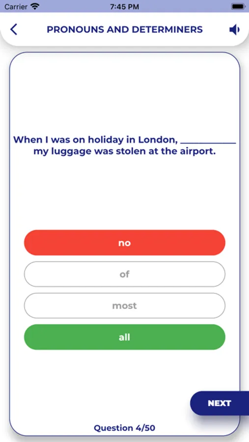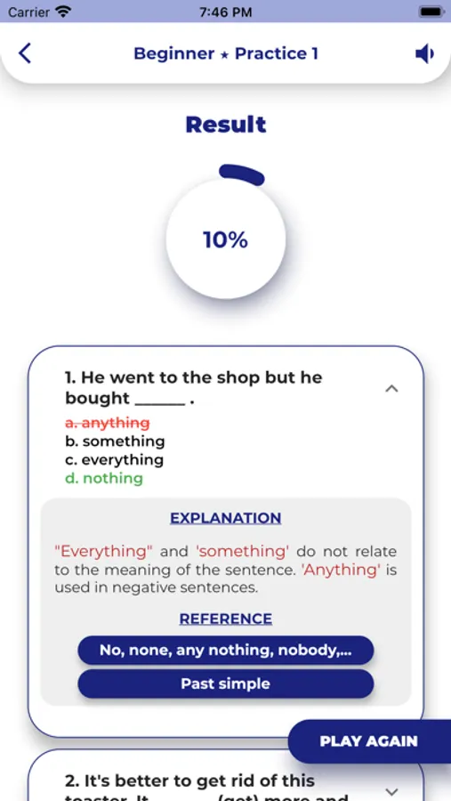 • 1000s of interactive grammar quizzes for all topics: designed to help you have an overview of each topic and distinguish between similar ones.