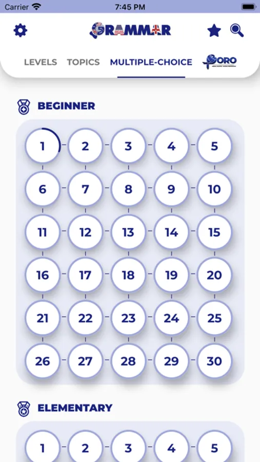 • Each level contains over 400 grammar activities, split into about 20 tests, and are made to mimic a real exam.