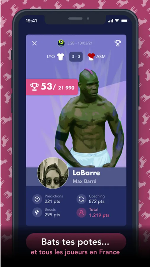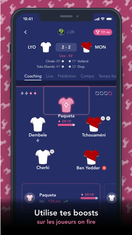 Choisis 5 joueurs bouillants, vois leur point évoluer en direct, fais des rempla malins, utilise tes boosts, devine ce qui va arriver...