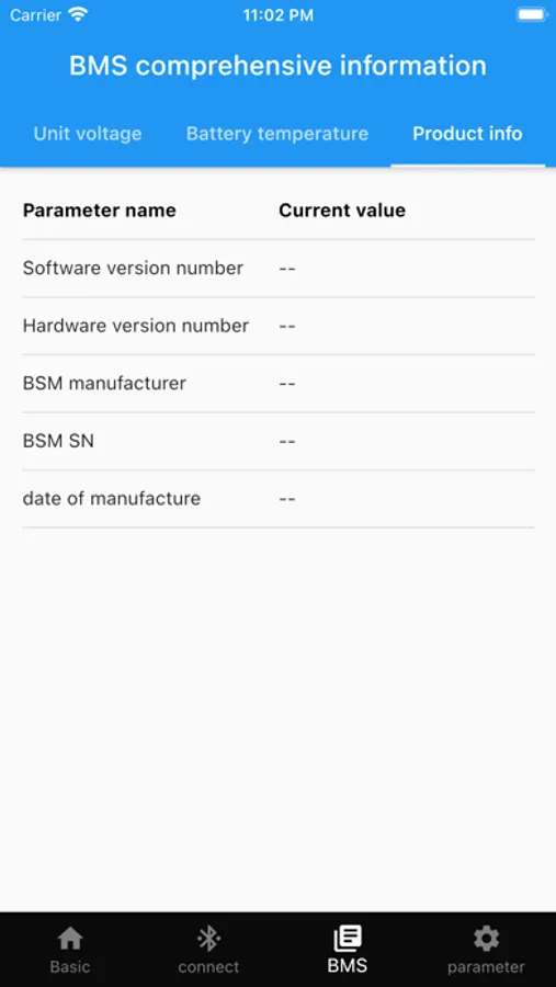 Imperium BMS connects to the battery management system (BMS) through Bluetooth to read the working status, remaining capacity(SOC), voltage, current, effective capacity, etc.