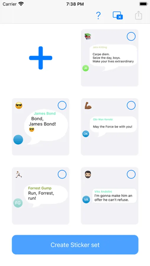 Step 6: Select any set of your stickers (up to 120) and create your own Sticker Set or export images