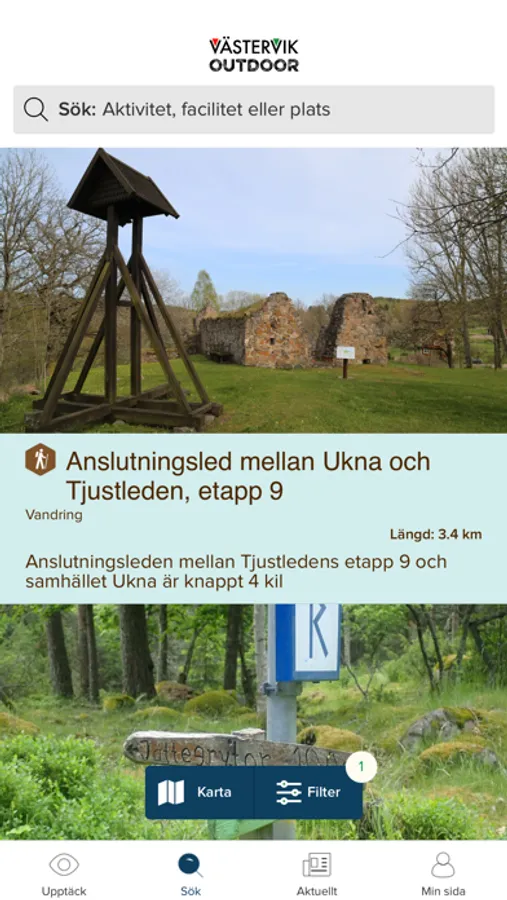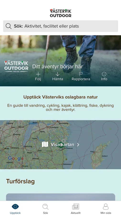 Västervik Outdoor samarbetar med Naturkartan. Skapa konto för att spara rutter, lägga till favoriter m.m. i appen och använd “Min sida“