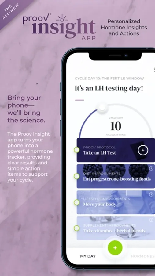 Proov Fertility Insight transforms your phone into a powerful fertility diagnostic tool Get rich hormone data based insight on your cycle to understand ovarian reserve, find the full fertile window confirm successful ovulation during the implantation window, and see key hormone balance ratios. Each month you will get your hormone report card including a Proov exclusive Ovulation Score along with actionable personalized solutions to promote cycle health and improve your chances of getting pregnant.