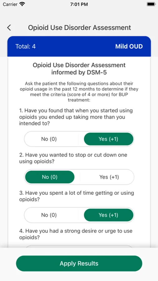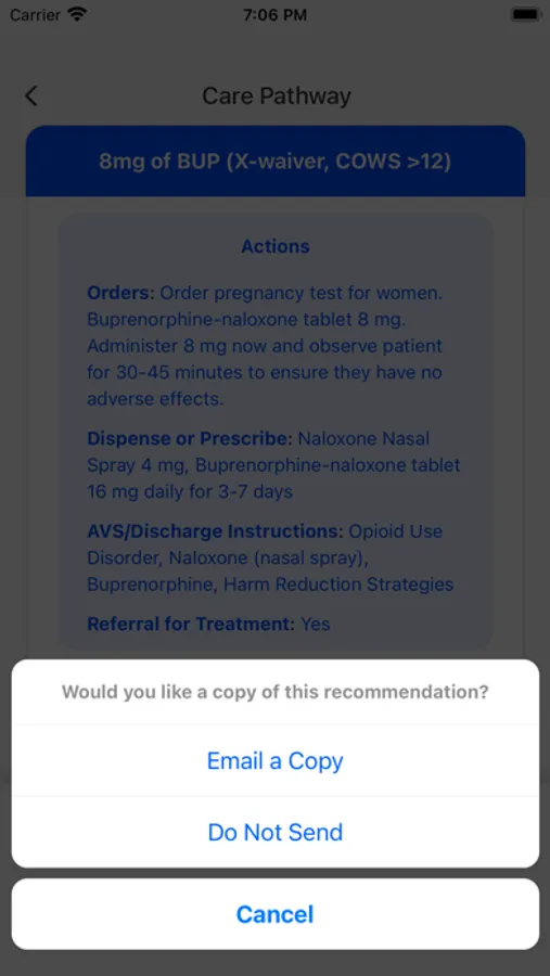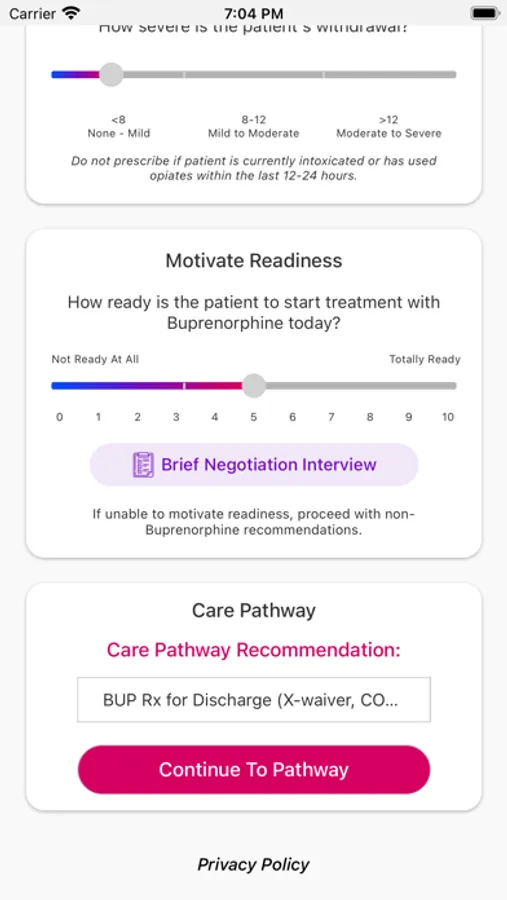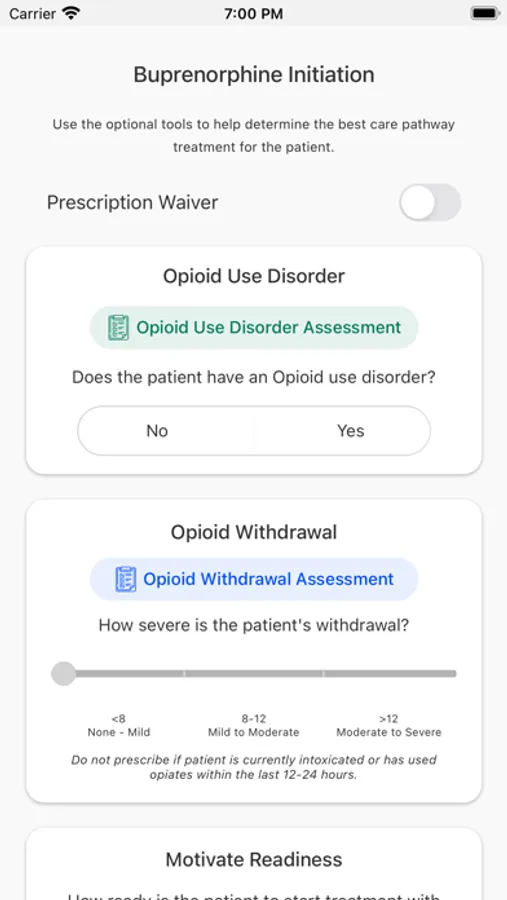 The Buprenorphine (BUP) Initiation app is an informative mobile application that guides healthcare professionals on how to initiate treatment with Buprenorphine in the emergency department (or other acute care setting) using a series of assessment tools and a brief negotiation interview.