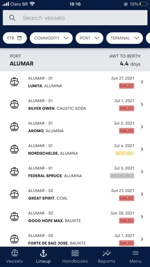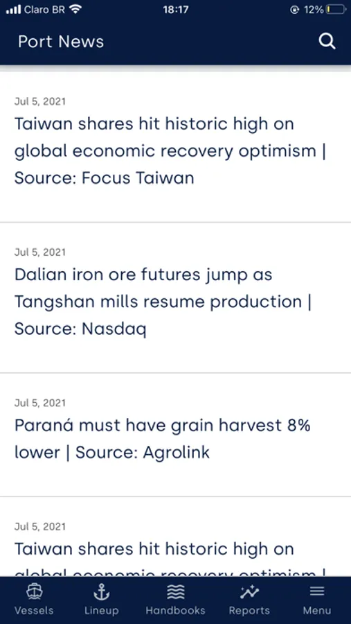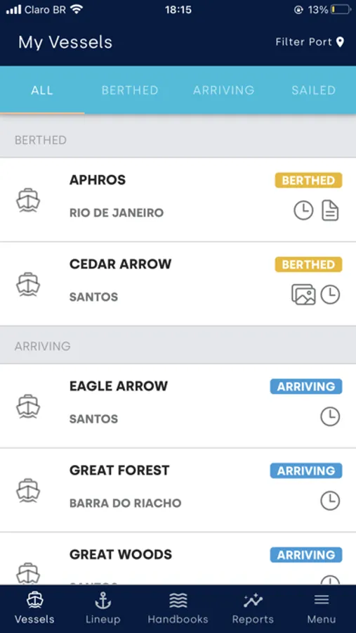 This app also features port line up, port handbooks, statistics reports and news functionalities.