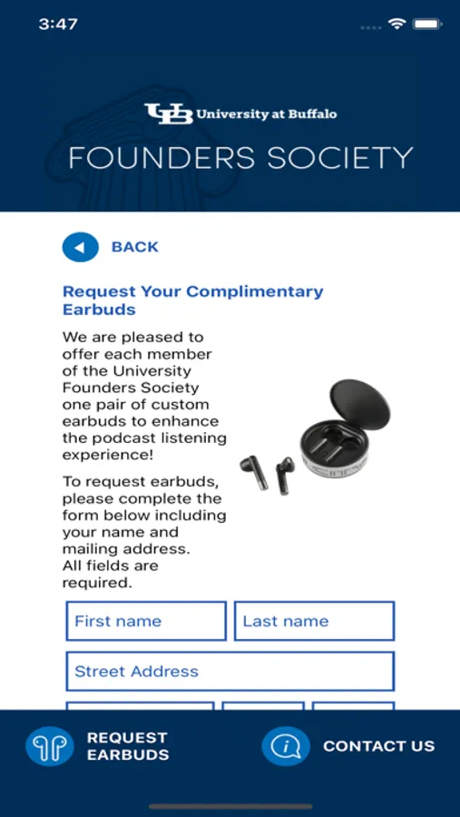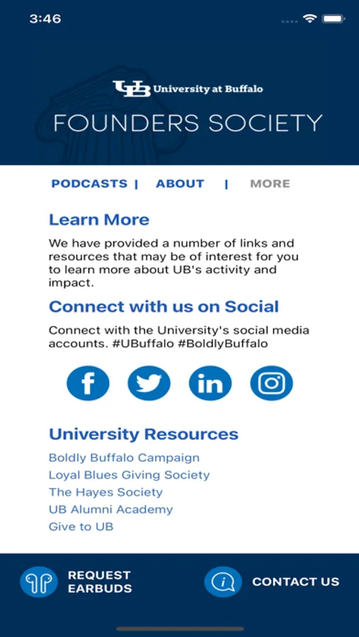 Members of the UB Founders Society are afforded a number of benefits to enhance their connections to the university. Chief among them is the University Founders Society app, created for the exclusive use of Founders members and the vessel for the Founders Society podcast, ThroughUB. The podcast shares thoughtful and educational conversations about the incredible work and people at UB. New podcasts are added monthly so we hope you will open the app and listen frequently. There are also a number of ways to stay in touch, in the know and connect with your concierge right from the app.