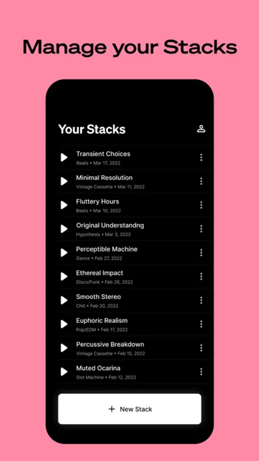 Create a Stack by choosing a style then add up to eight instrumental layers from across the Splice catalog—every selection is uniquely yours and destined to work.