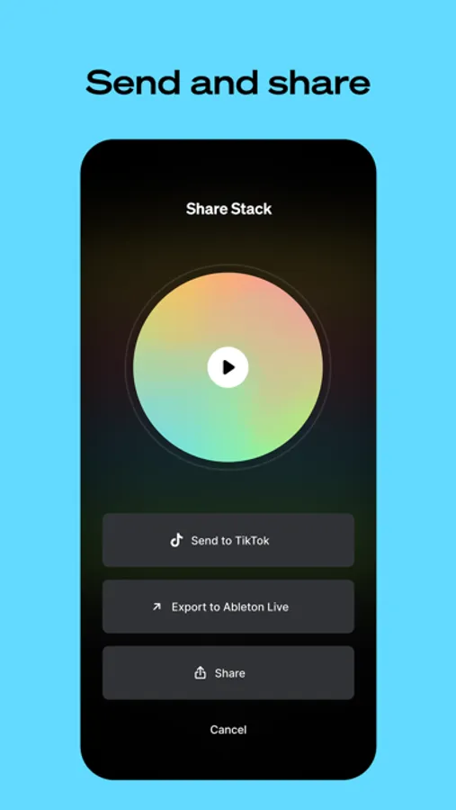 Send your stack to socials, save to your library, share with a friend, or export it to Ableton Live. You can also locate your sounds in the Splice library to use them in your DAW.