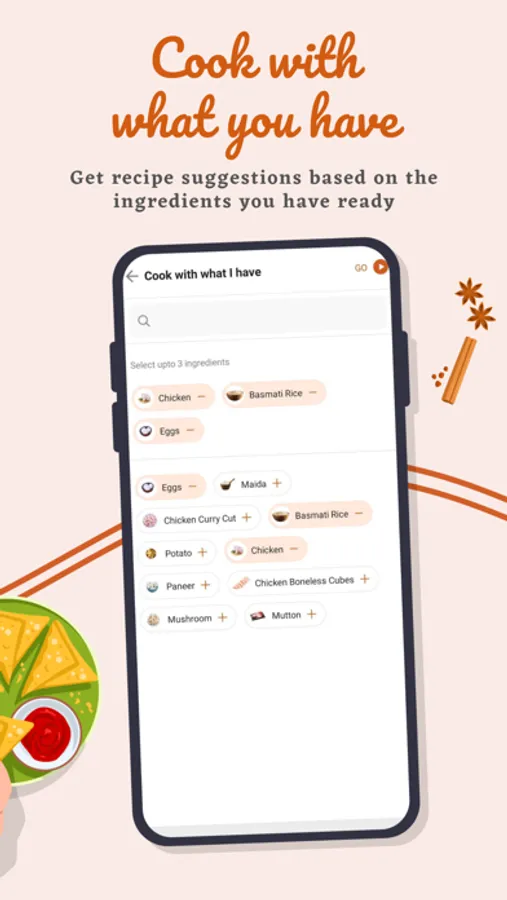 It's a situation where you'll find yourself mostly in. You have a few ingredients at home and you're thinking about what to cook with them. Just add the ingredients you have in the Cookd App and we'll suggest you some delicious recipes!