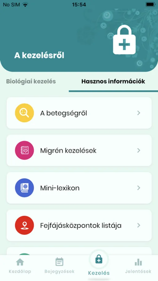 A zárolt rész csak a biológiai kezelésben részesülő betegek számára hozzáférhető. A felhasználók egy adagolási naplót vezethetnek, amely emlékezteti őket, hogy mikor kell beadni a gyógyszer következő adagját.