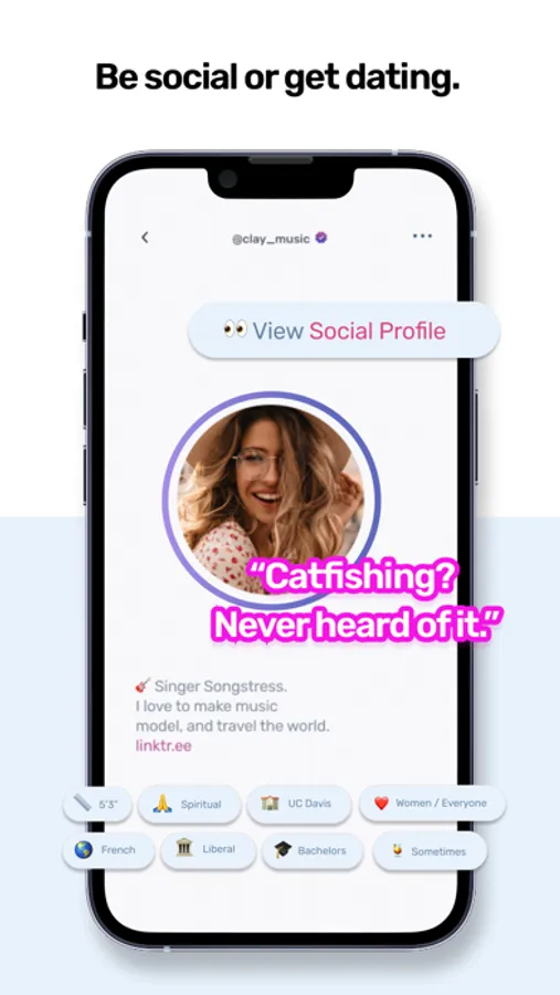 We’re an 18+ community focused on helping you create all kinds of lasting connections– friends, dates, whatever those may be! Easily switch between your social and dating life. Invite your friends and share your content.