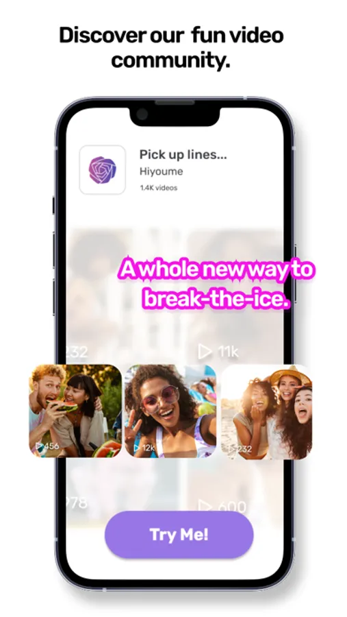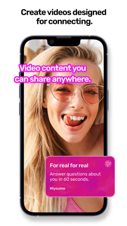 The best part? It’s all video-based. Not a professional content creator? Don’t worry, we’ll help you create content through hiyoume’s unique VIDEO PROMPTS that help you dive deep and skip the small talk. With question packs, video challenges, sing-a-longs, and more, we’ve created a whole new way to really get to know people.
