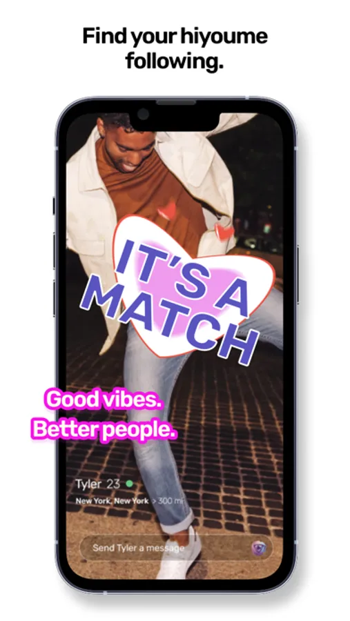 Match from content. Hiyoume learns what types of content you like to see and then applies it to a curated feed of potential matches. Chat with matches with new and improved message features.