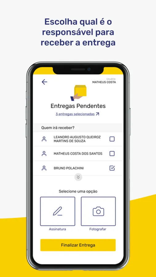 - Capture a assinatura digital ou a foto da pessoa que está recebendo a entrega;