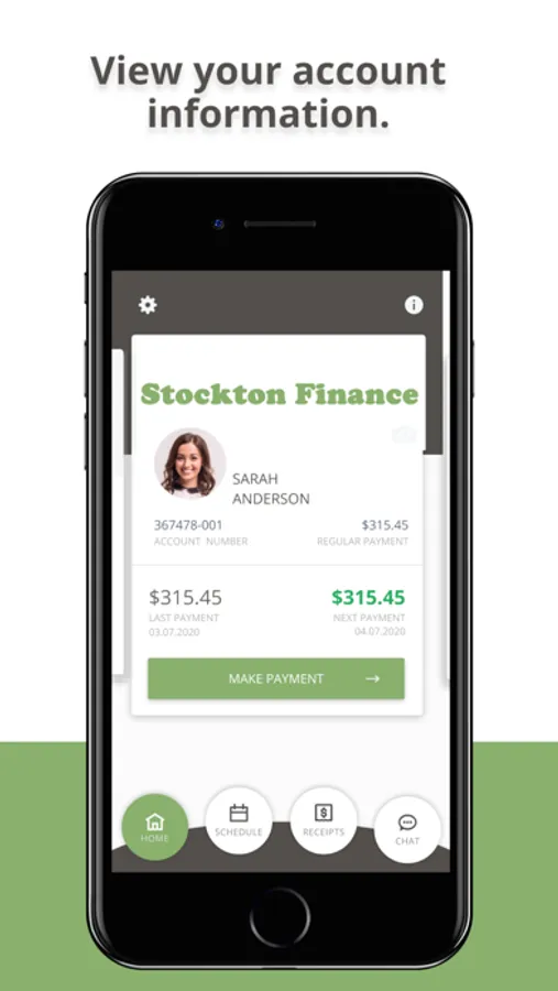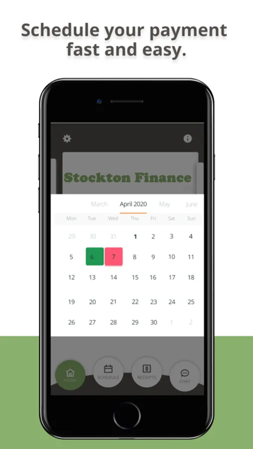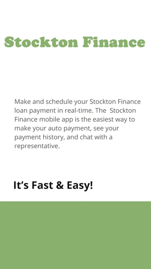 Make and schedule your Stockton Finance payment in real-time. The Stockton Finance App is the easiest way to make your payment, see your payment history, and chat with your provider. It's fast and easy.