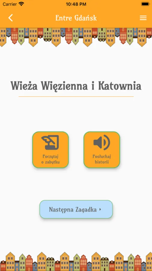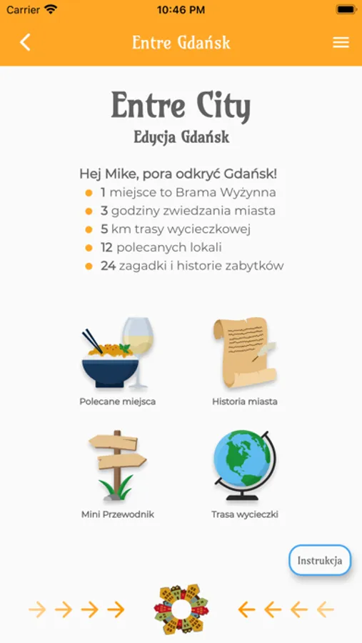 Entre Gdansk is a city game in which players have to discover puzzles on the most important monuments in Gdansk. Thanks to the game, the user will learn the history of the city and discover its modern side - entertainment venues, pubs and restaurants. Each solved puzzle gives you the opportunity to receive an interesting bonus or a discount in one of Gdansk's venues. You will need approximately 2 hours to solve all 24 puzzles. Take a break during the game and visit the recommended places.