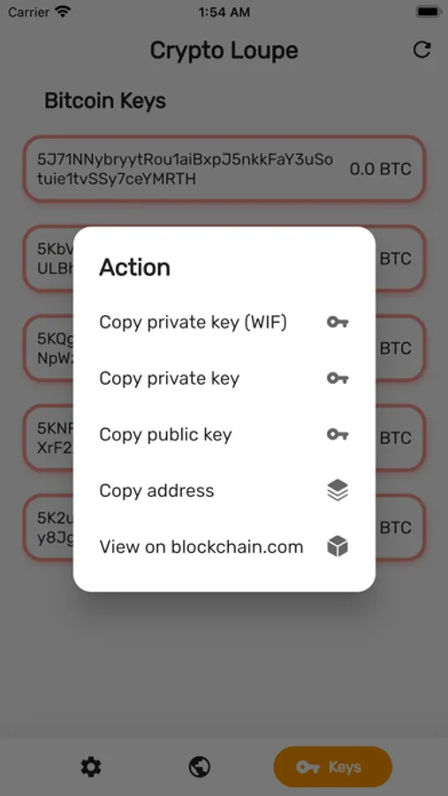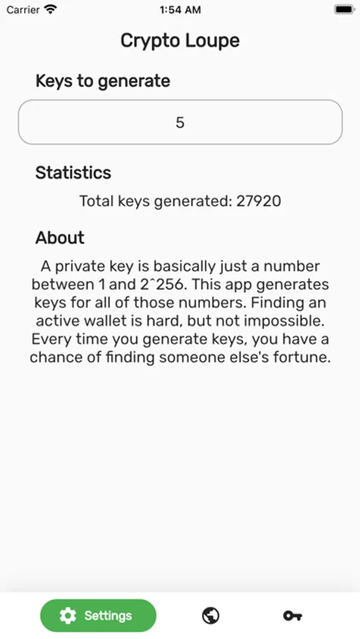 There are 2^256 possible keys that are generated by this app. Finding an active wallet is hard, but not impossible. Every time you generate keys, you have a chance of finding someone else's fortune.
