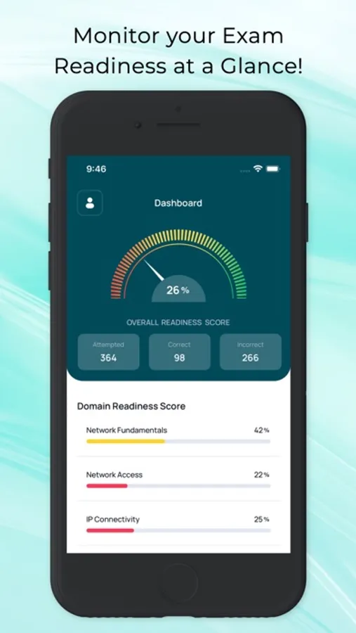 Readiness Score: Based on your performance in the practice tests, your readiness score is calculated. The overall readiness score indicates your readiness for the real test and the domain readiness score indicates your strengths and weaknesses in each domain.