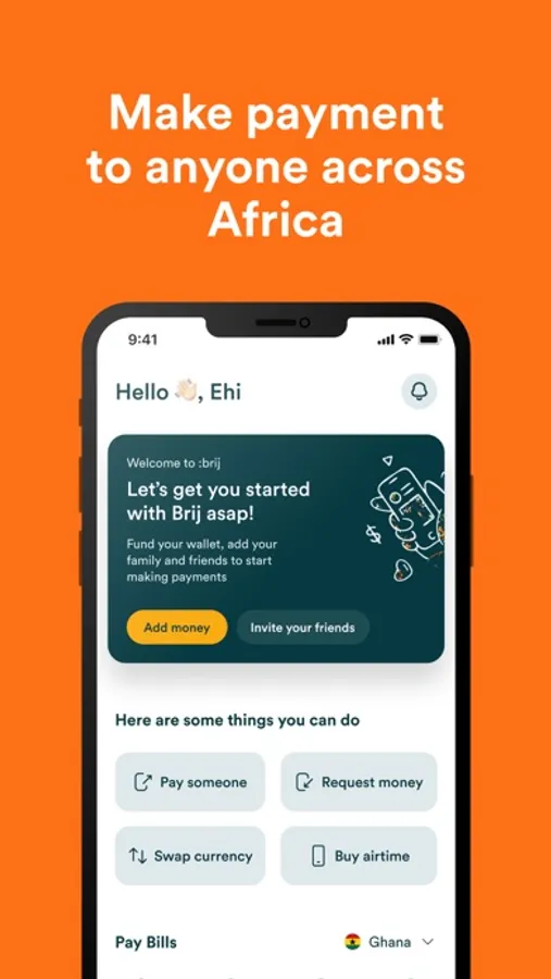 Brij makes it easy to make payments across Africa where each user gets a multi currency wallet and is able to pay bills for friends and family in Africa.
