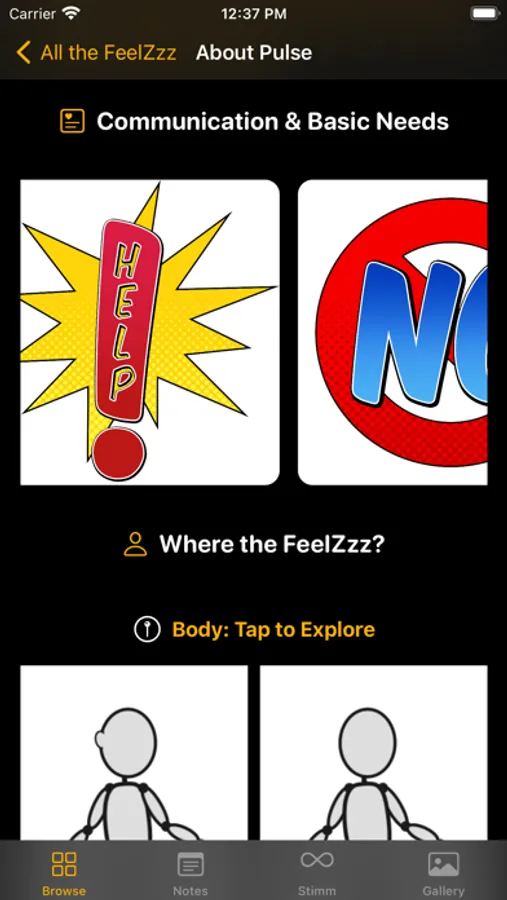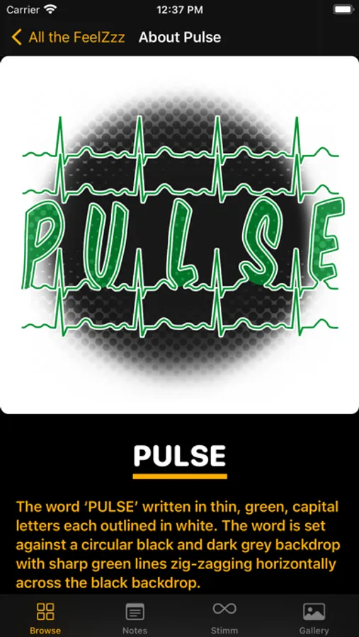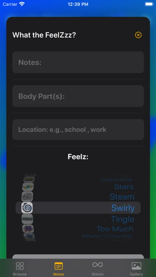 All the Feelzzz is designed specifically for and with input from the autistic community. Autistic individuals often experience sensations (e.g., pain and discomfort) differently than neurotypical people do. As such, All the Feelzzz is designed to represent these differences by providing graphical representations that attempt to capture a more complex, subtle, and/or multidimensional experience of feels that may resonate more with autistic people and people who process sensory input differently in general. These complexities, and the multidimensional nature of feels for autistic people, must be accounted for in any tool or strategy that aims to support the challenges that can come with attempting to heal or minimize unwanted feels, seek help, or simply express oneself in ways that are authentic and unmasked. Thus, qualities such as texture, intensity, imagery, color, and a full range of tactile qualities are represented in All the Feelzzz graphics!
