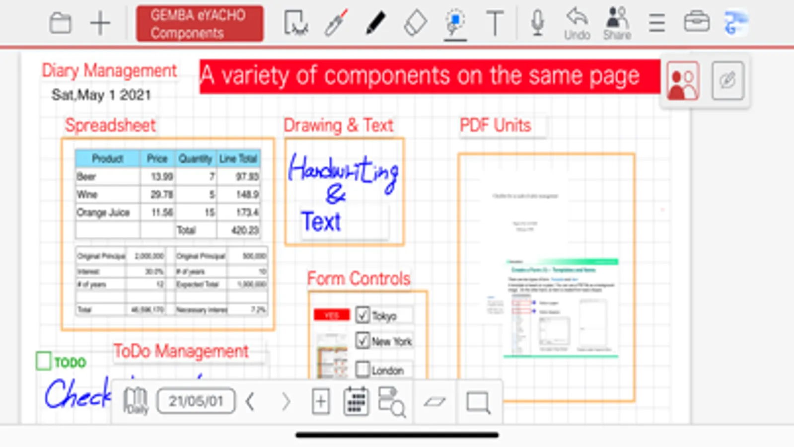 ● Maintain a diary with pages automatically timestamped, allowing you to organize and view your records in a calendar view