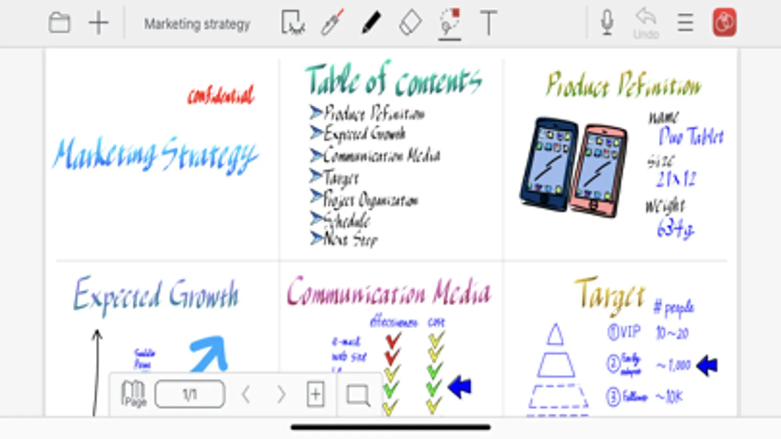 Not only write memos directly on the note, but the written notes are communicated to all participants in real time. The "visualisation" of the discussion dramatically increases the productivity of the meeting. Capturing and distributing minutes becomes more efficient.
