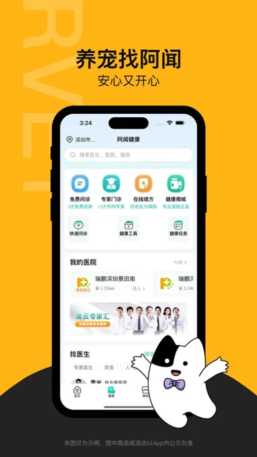 国内优质宠物综合平台!宠物医疗、宠物洗美、食品药品、用品玩具,涵盖养宠生活的方方面面,优享养宠新生活。 【功能介绍】 附近5-10公里范围,覆盖全国1000+家宠物医院 简单订购,手机下单方便快捷 退款方便,原路返还 全国连锁,品质保障!