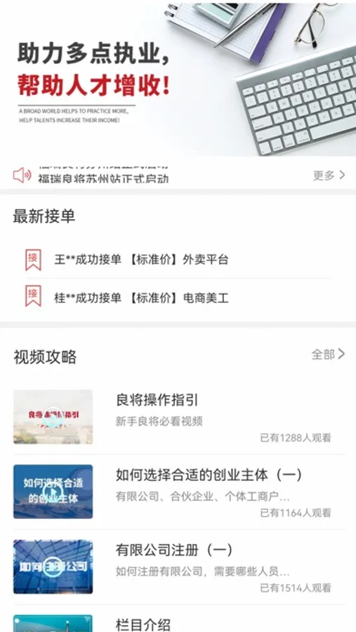 福瑞良将是专注于商务服务领域的互联网知识型零工经济平台。服务范围包括工商财税、知识产权、IT技术、视觉特效、工业设计等。为知识型人才寻找增加收入的机会。