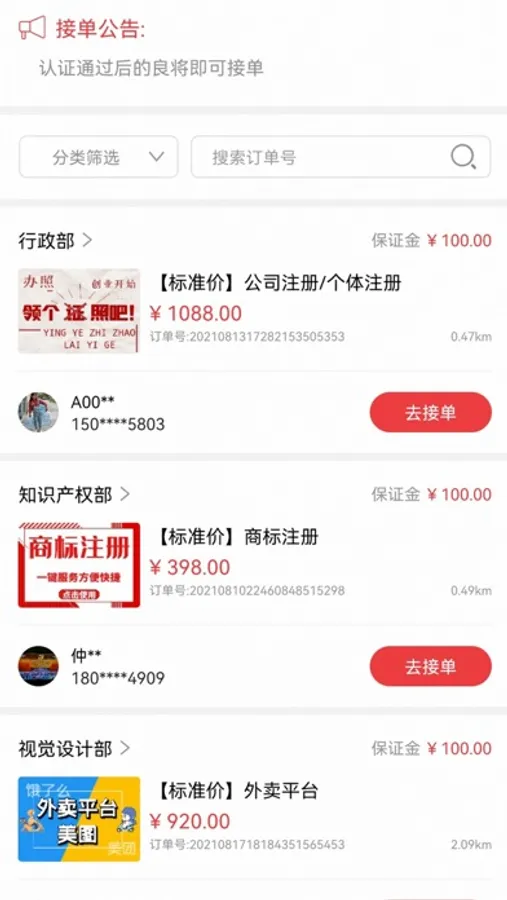 平台采用就近匹配原则,良将接单均可查看需求方距离,了解需求细节,一键便捷接单。
