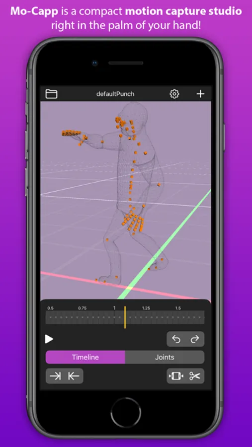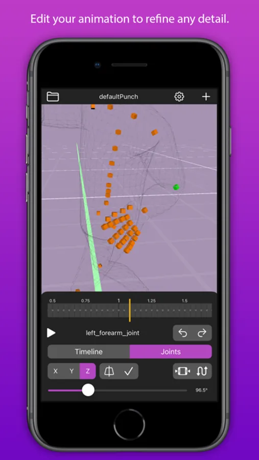 After recording an animation you can edit it as you want. Trim the timeline, rotate joints, interpolate and more.